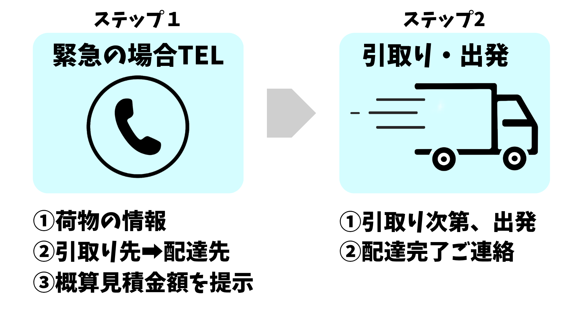 → ご連絡から最短で即引取りへ出発。時間厳守で対応します。